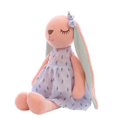 tutpopknuffel konijn met blauwe jurk Losse verkoop of met borduurwerk op de oren.