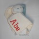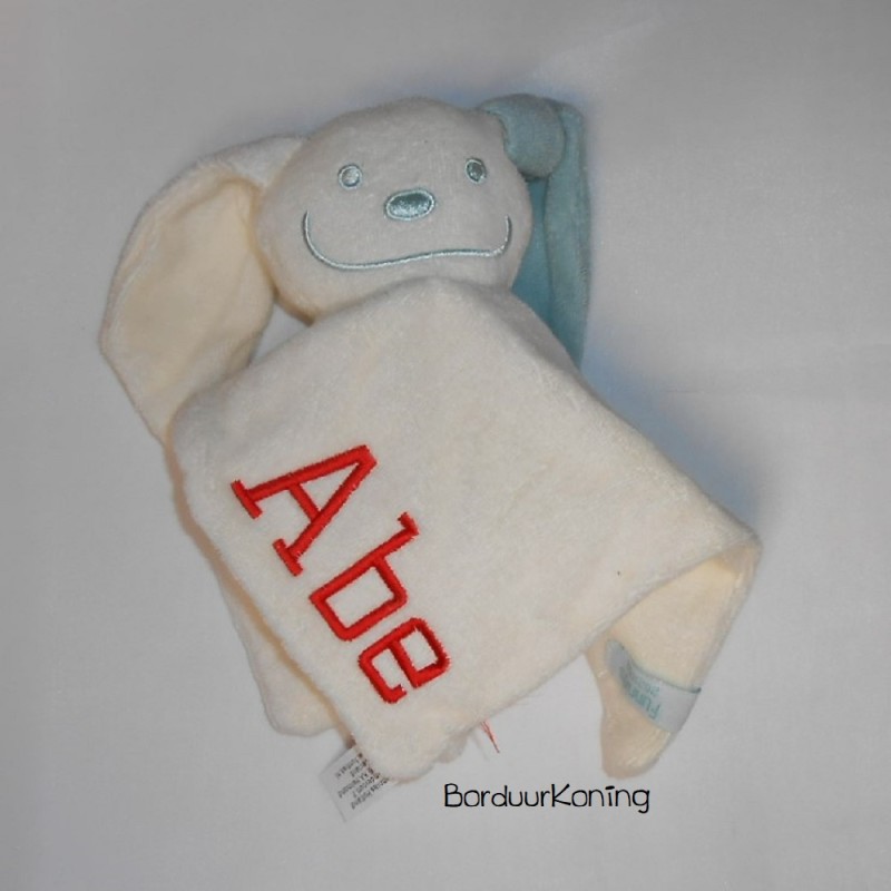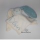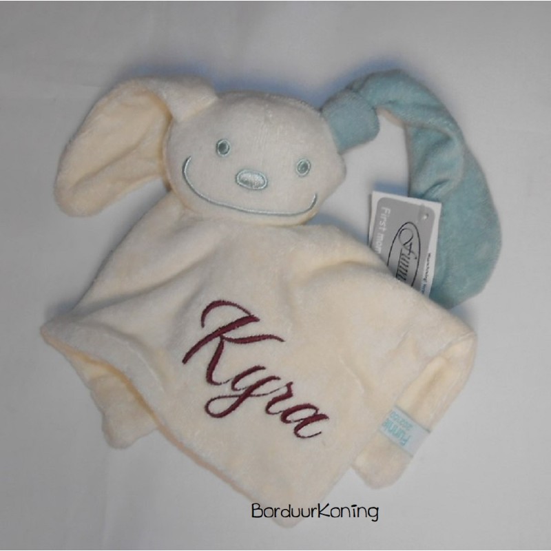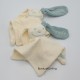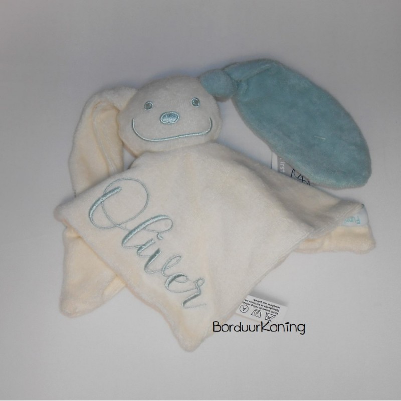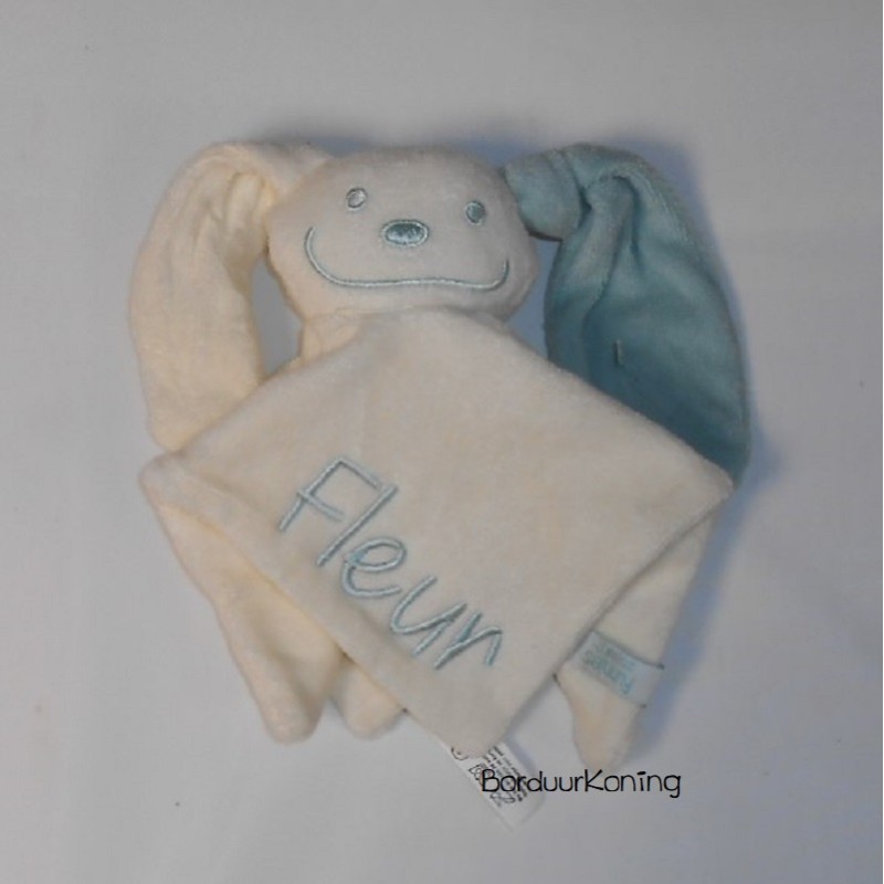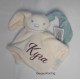 Tutpoppetje ecru doekje (24 x 24 cm), één oor is stonegreen van kleur.