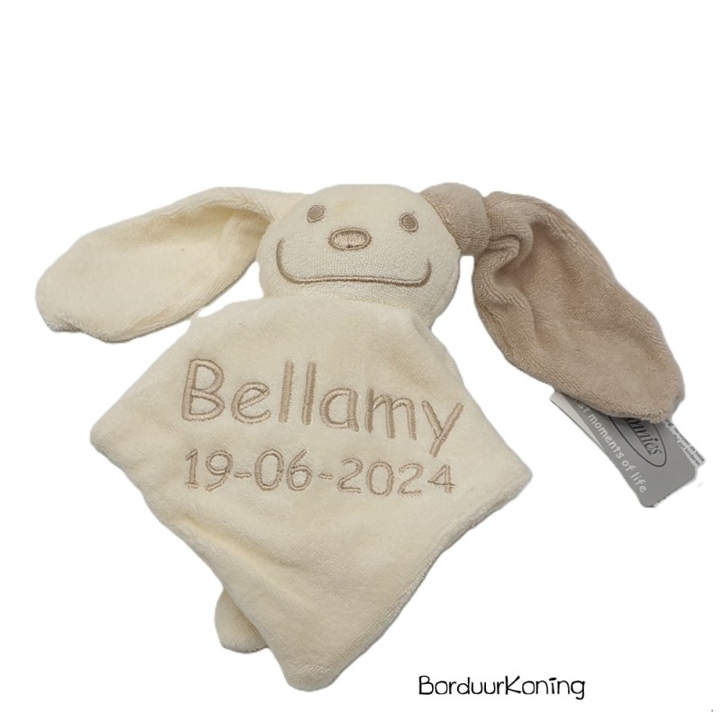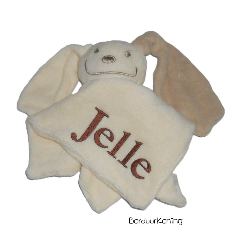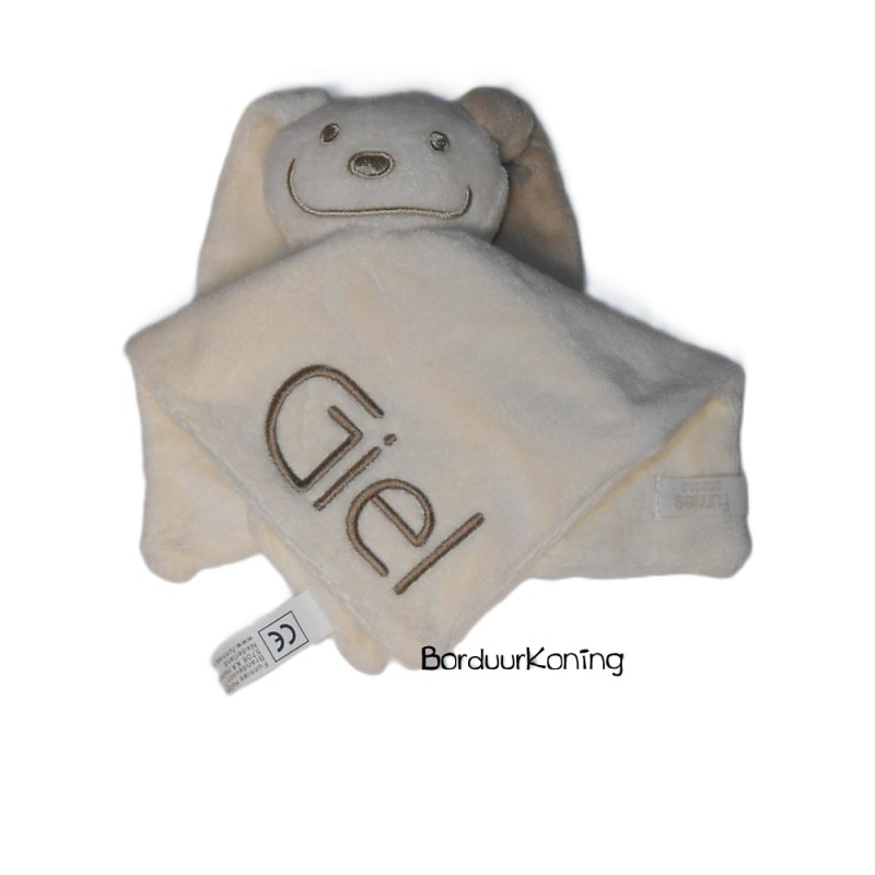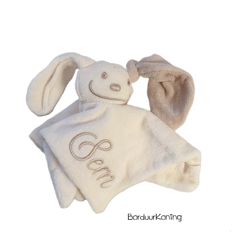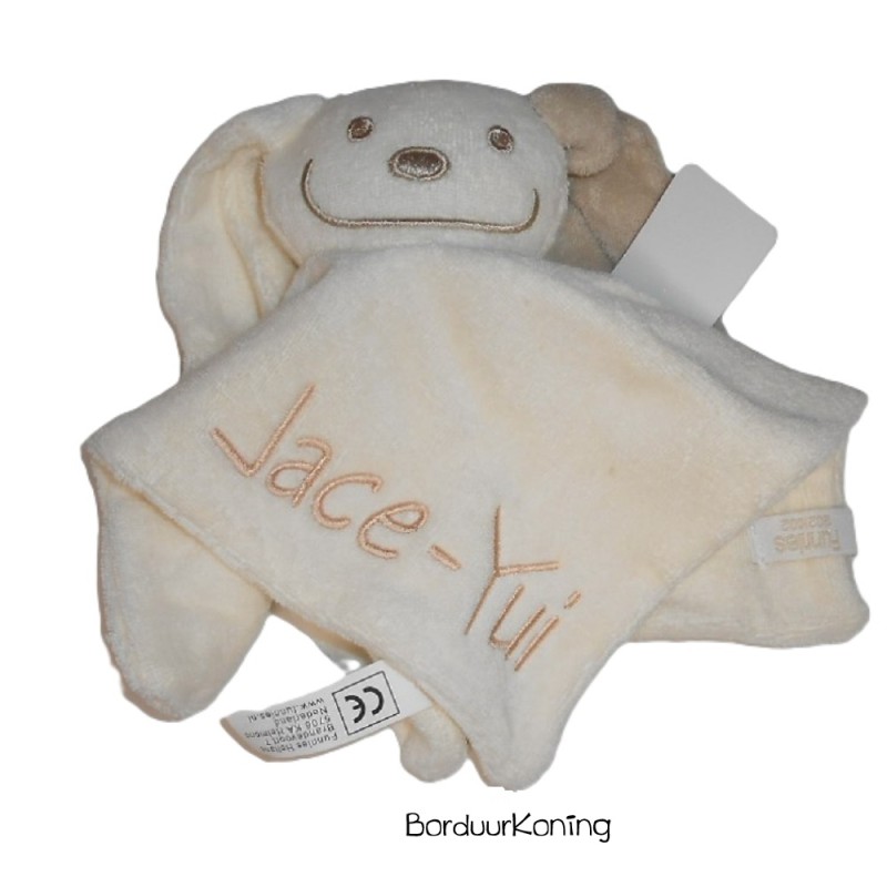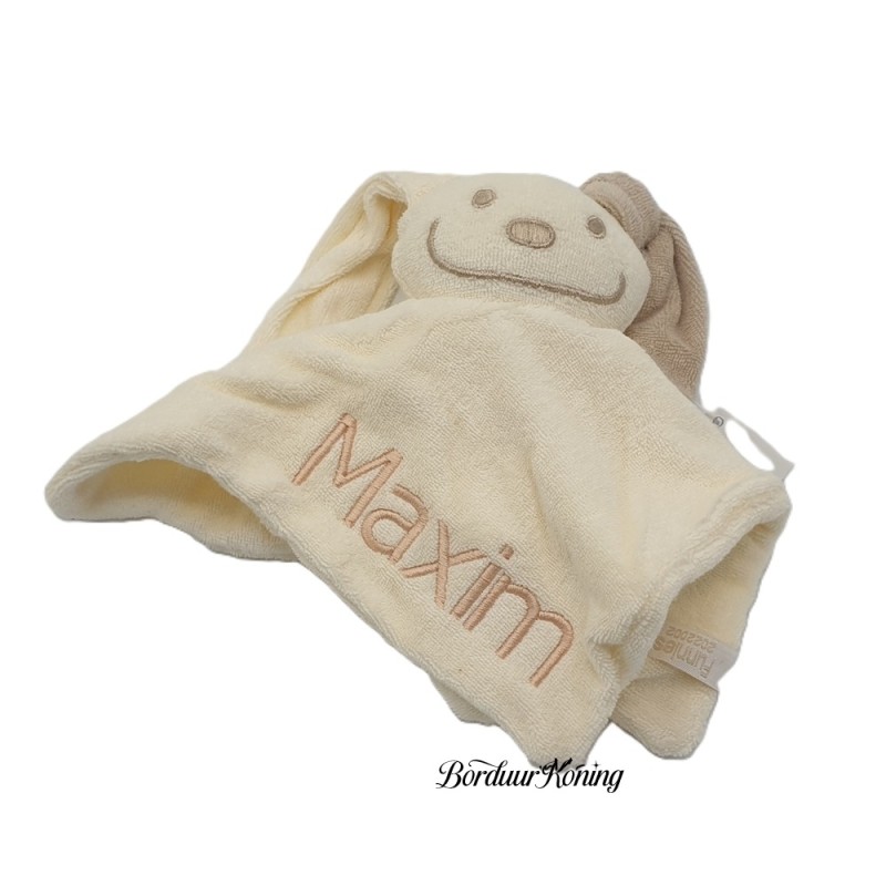 Tutpoppetje ecru doekje (24 x 24 cm), één oor is beige van kleur.