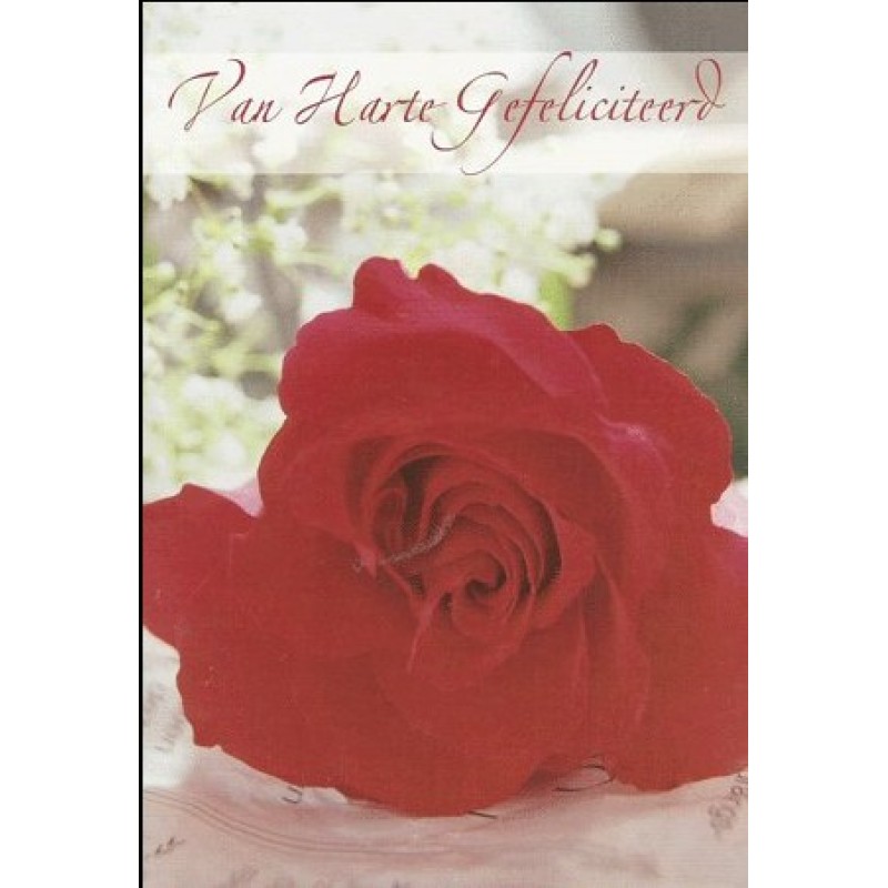 Wenskaart Van Harte Gefeliciteerd roos motief