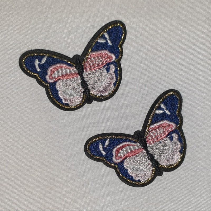 Applicatie vlinder fantasie 2 stuks kleuren zwart, goud, roze en wit donkerblauw