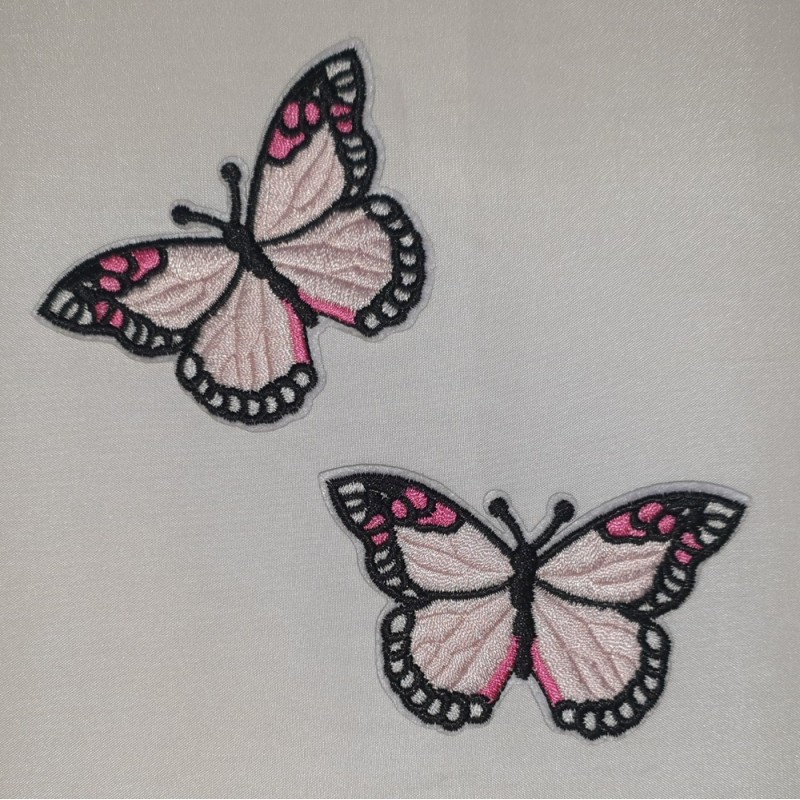 Applicatie vlinder lichtroze 2 stuks kleuren zwart, wit, lichtroze en roze