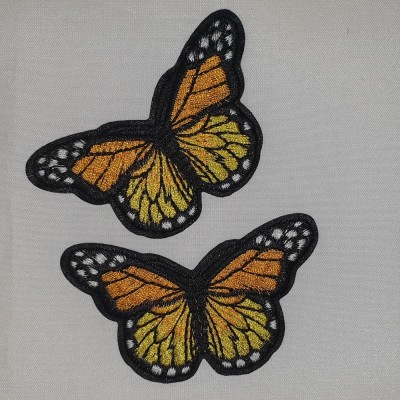 Applicatie vlinder zwart geel 2 stuks kleuren zwart, geel oranje en wit.
